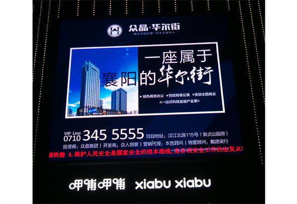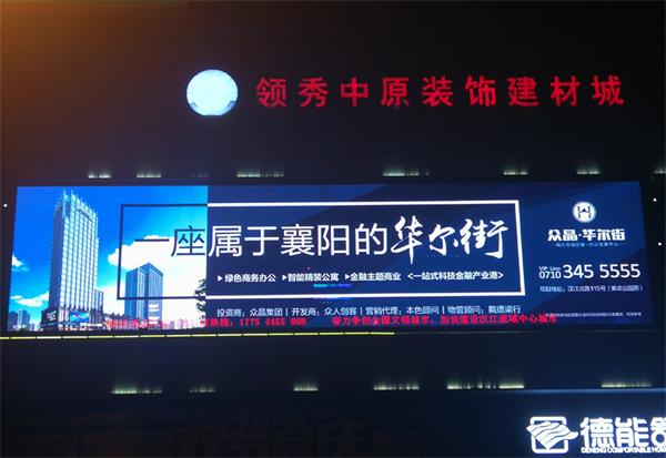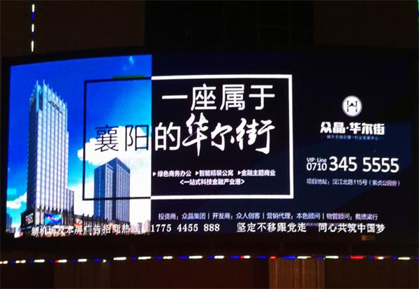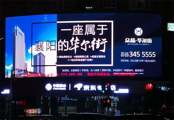 2018年9月湖北遠望視界廣告有限公司(襄陽)上旬發(fā)布眾晶華爾街LED大屏廣告
